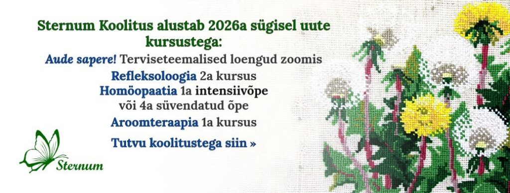 Homöopaatia täiendkoolitus. Iga kuu esimesel teisipäeval kell 18.00-21.00 zoomis.